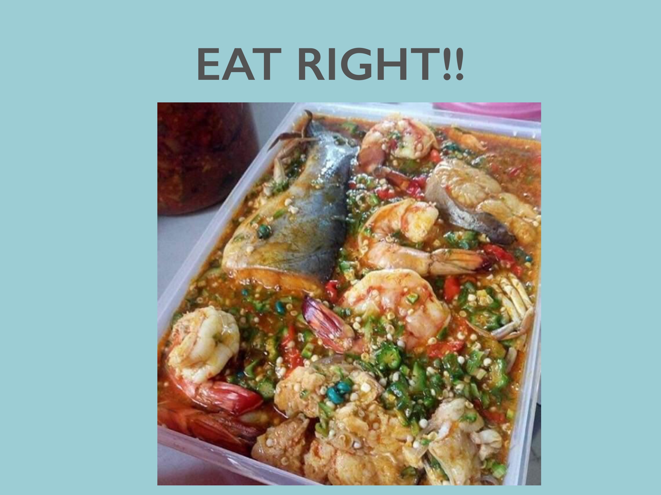 Seyi Idowu FWACS, FMCOrtho EAT RIGHT!! The chief barrier to success is mindset: • Change yours • Develop emotional discipline • Get closer to the anaesthetist if you need to One habit at a